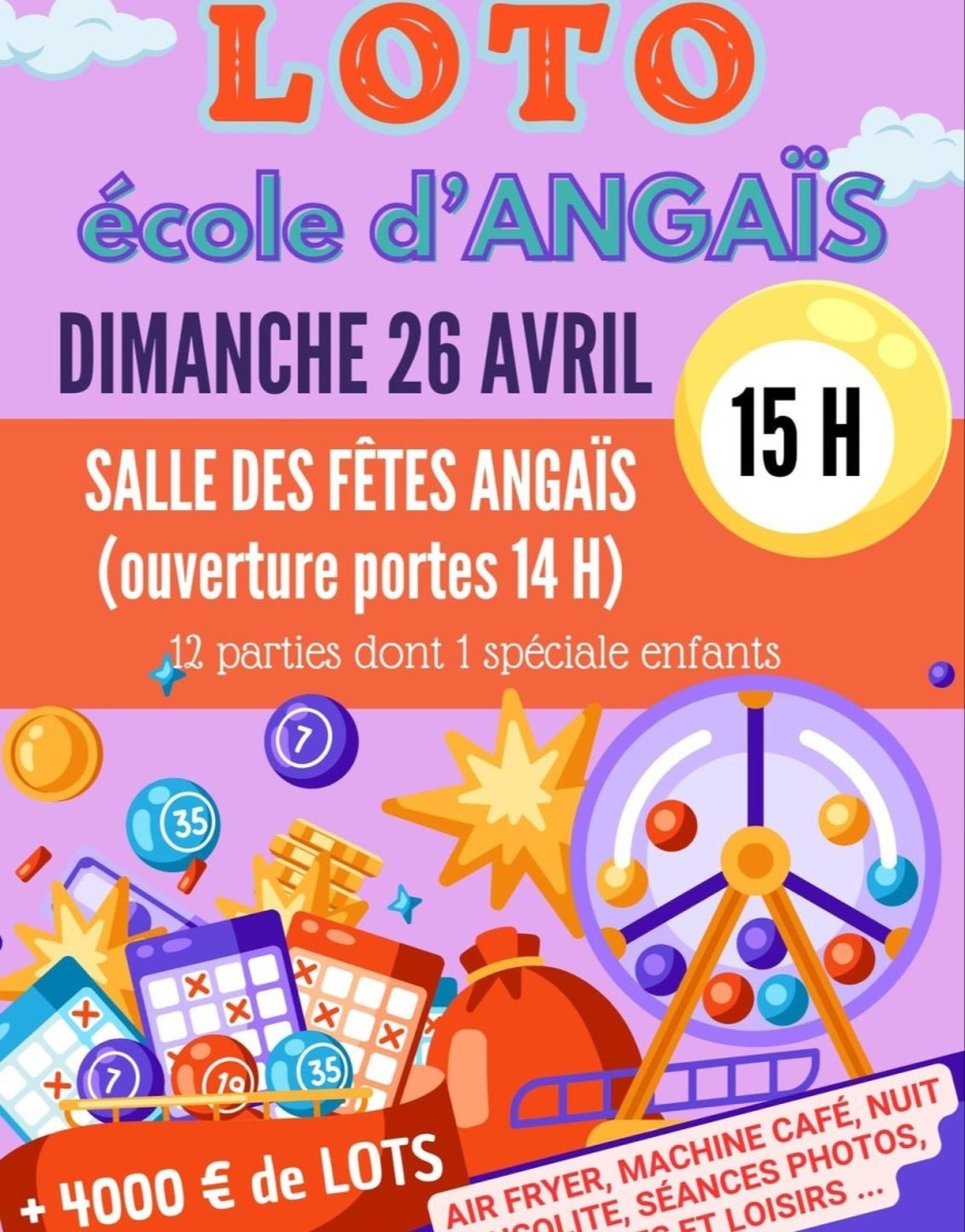 Participez à un moment convivial et solidaire avec le loto organisé par l’association des parents d’élèves au profit de l’école d’Angaïs.