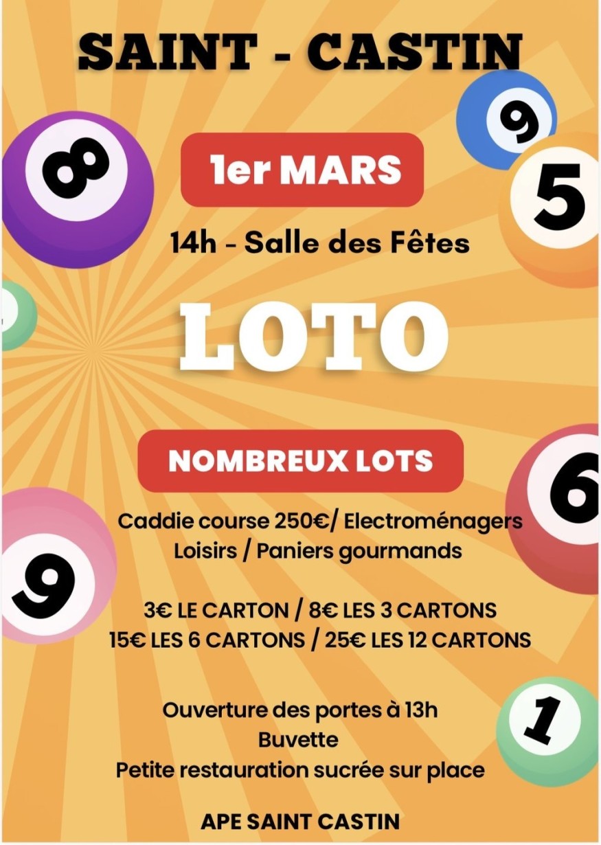 Organisé par l’APE de Saint-CastinVenez en famille passer un moment convivial et tenter votre chance