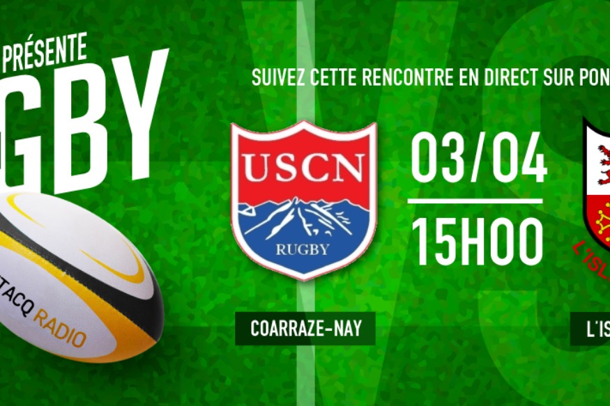 Réécoutez le match entre l'US COARRAZE-NAY & l'USL Isloise Rugby (l'Isle Jourdain), diffusé sur Pontacq Radio le dimanche 04 avril 2022 !