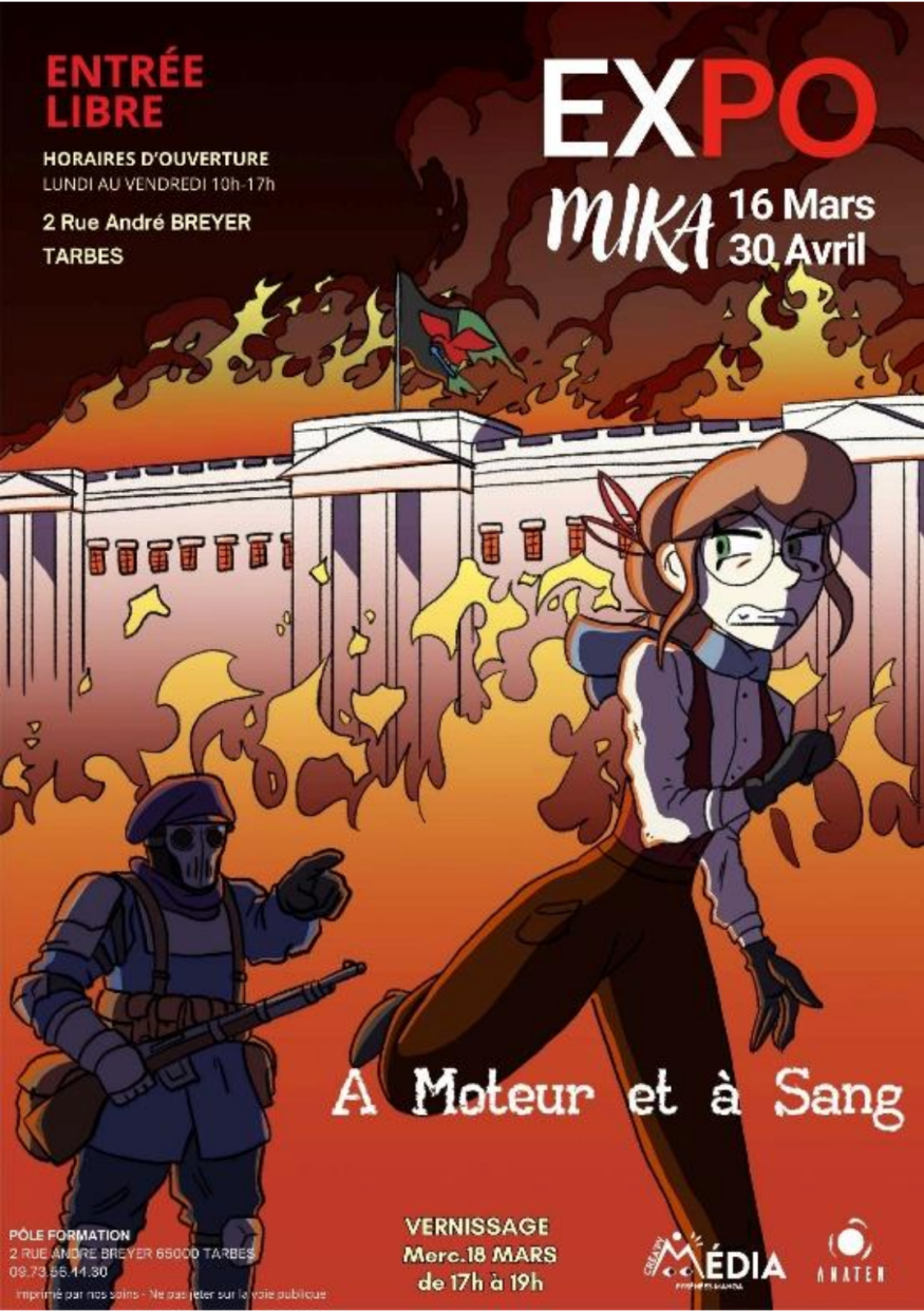 L’École Anaten de Tarbes et l’Association Crea'py Media s’associent pour présenter « À Moteur et à Sang », la première exposition personnelle de Nathan Pradelle, alias « Mika », jeune illustrateur et artiste-auteur diplômé du Master Art & Transmédia.