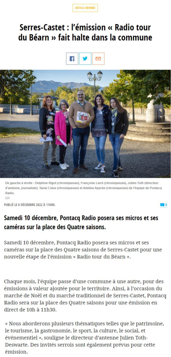 Compilation d'articles dans la PQR (La République des Pyrénées / La Dépêche du Midi / La Semaine des Pyrénées). Merci à nos confrères de se faire l'écho de nos activités.